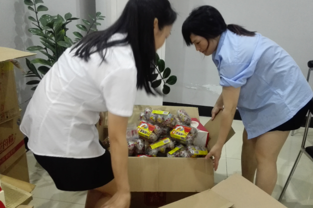 負責領(lǐng)取的前臺小周清點、簽名忙的不亦樂乎,這不,財務(wù)部的美女們熱心幫忙分發(fā)啦!