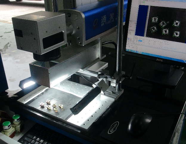 現(xiàn)在新技術(shù)不斷涌現(xiàn),通發(fā)激光最近新研制的視覺定位激光打標(biāo)機(jī),可實(shí)現(xiàn)產(chǎn)品只要在激光打標(biāo)掃描振鏡的加工范圍內(nèi),即可實(shí)現(xiàn)準(zhǔn)確打標(biāo),即每次的位置即使不一樣,加工位置也沒有問題。本技術(shù)運(yùn)用了視覺定位原理,先對產(chǎn)品進(jìn)行模板制定,確定產(chǎn)品的外形,保存為標(biāo)準(zhǔn)模板,在正常加工時對所需加工的產(chǎn)品進(jìn)行拍照,由計算機(jī)進(jìn)行快對比模板進(jìn)行對比及位置定位,調(diào)整后即可對產(chǎn)品進(jìn)行準(zhǔn)確加工。所加工的產(chǎn)品外形可以是圓形、方形、非規(guī)則形狀都可以識別,這種工藝特別適合小產(chǎn)品,可免除定位料盤、固定夾具的加工,大大節(jié)省了激光打標(biāo)加工周期。同時也適合流水線產(chǎn)品移動時,進(jìn)行的在線激光打標(biāo)加工。
