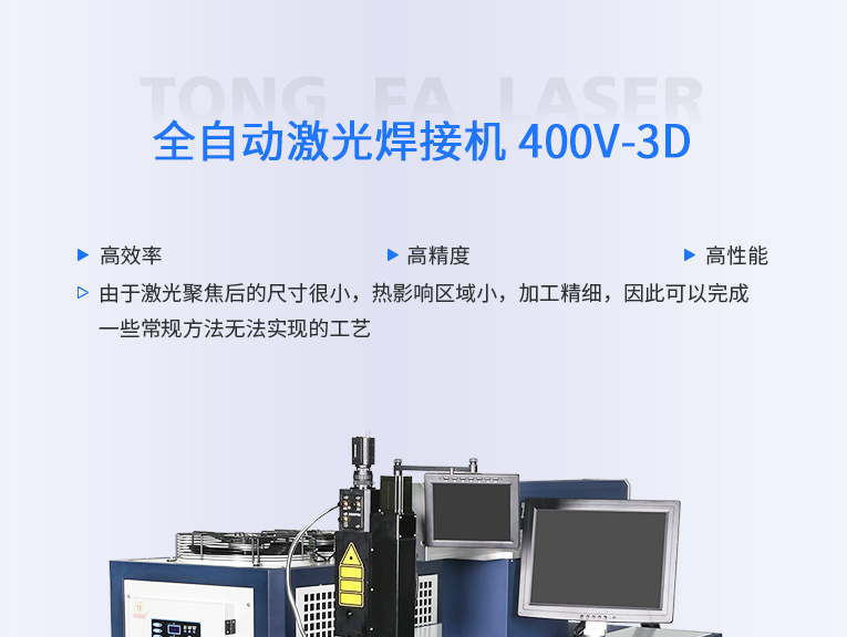 TFL-400V/500V-3D激光焊機是一款高穩(wěn)定性、大功率的焊機,滿足長時間生產(chǎn)的需要。大功率激光電源,大功率散熱系統(tǒng)滿足24小時大批量生產(chǎn)。機身采用高強度結(jié)構(gòu),保證精度、性能穩(wěn)定??刂葡到y(tǒng)是專為激光焊接量身定做的專業(yè)4軸控制系統(tǒng),穩(wěn)定性高,易學(xué)易懂易上手。擴展性強,可結(jié)合流水線、光電傳感器、氣動夾具等組合進行全自動無人值守式加工。