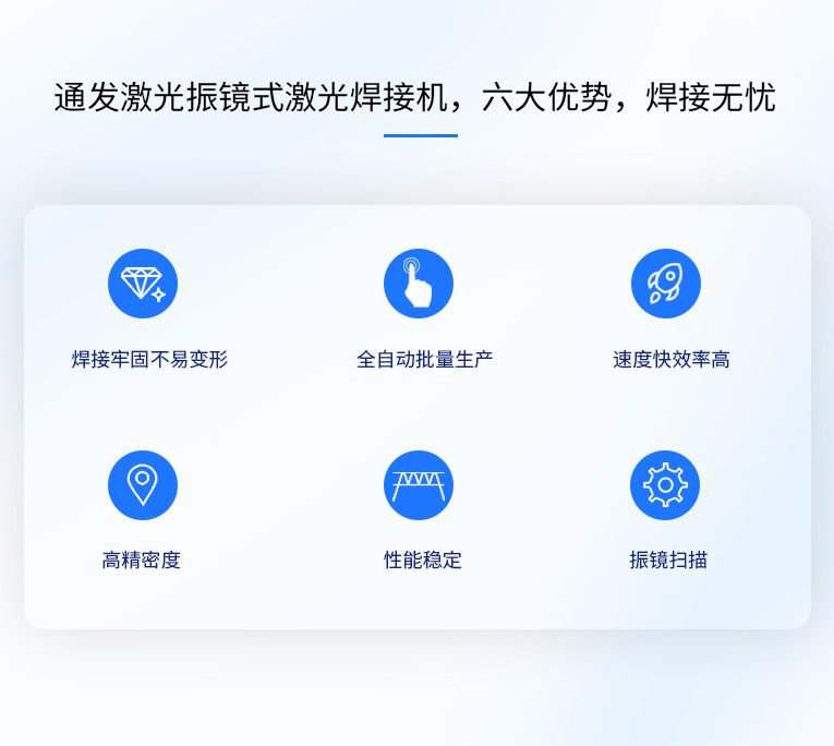 通發(fā)激光TFL-180SW振鏡式激光焊接機(jī),采用2軸高速掃描振鏡,焊接速度是工作臺移動的5倍,滿足0.5mm以內(nèi)料厚不銹鋼多點擊穿疊加焊接,也適用手機(jī)五金不銹鋼螺柱高速激光焊接加工。