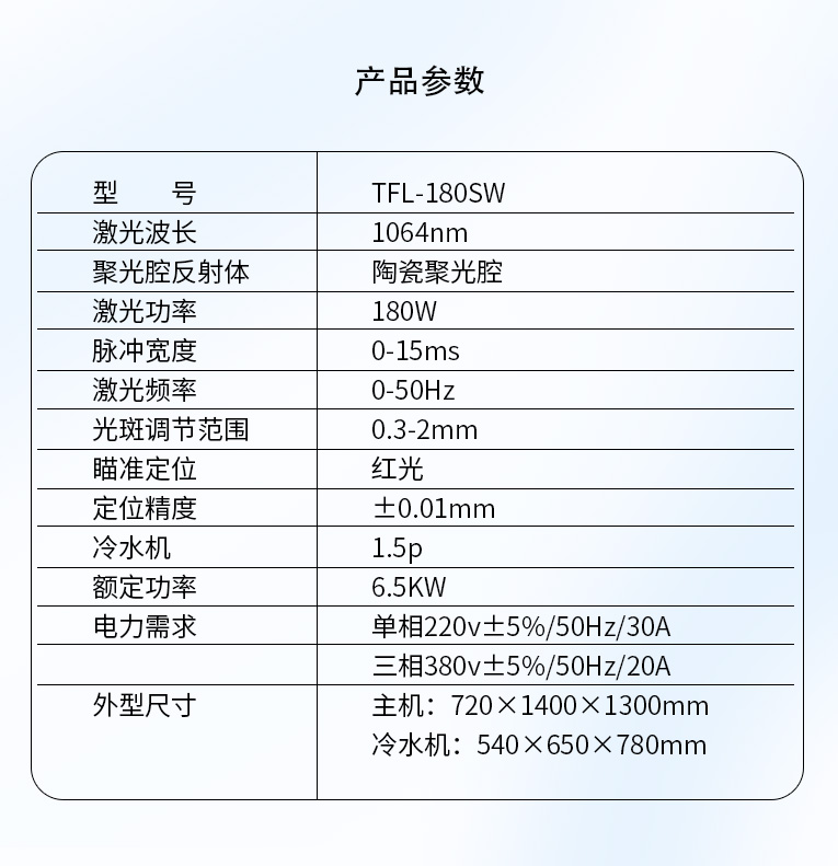| 外型尺寸 | 主機(jī):720×1400×1300mm 冷水機(jī):540×650×780mm | 主機(jī):720×1400×1300mm 冷水機(jī):600×900×1300mm |