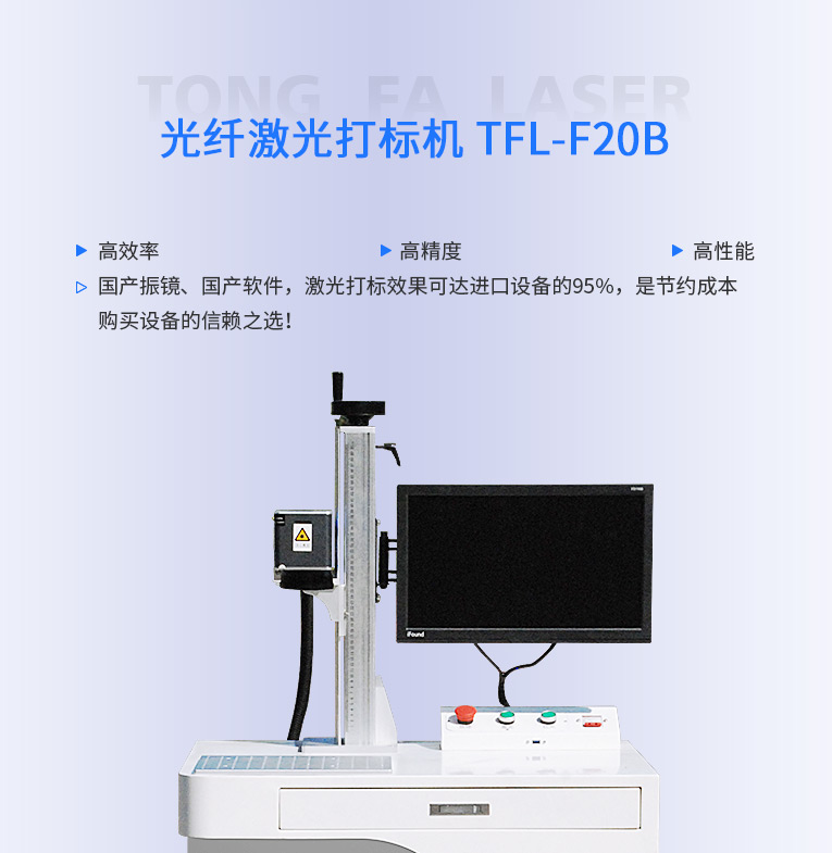 通發(fā)激光研發(fā)的TFL-F20B激光打標(biāo)機(jī),金屬材質(zhì)和塑膠材質(zhì)均可進(jìn)行打標(biāo)加工。本激光鐳雕機(jī)光纖激光器、振鏡、軟件、聚焦鏡等核心配件采用原裝進(jìn)口,性能穩(wěn)定,壽命是國產(chǎn)器件的1.5倍,是高端客戶的優(yōu)選。