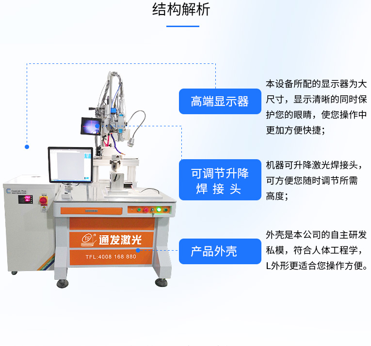 2、強(qiáng)大的PC控制,易于編程、調(diào)試和維護(hù)??赏瓿勺詣?dòng)或半自動(dòng)的點(diǎn)焊、對接焊、疊焊、密封焊,針對復(fù)雜的平面直線、圓弧及任意軌跡的焊接。