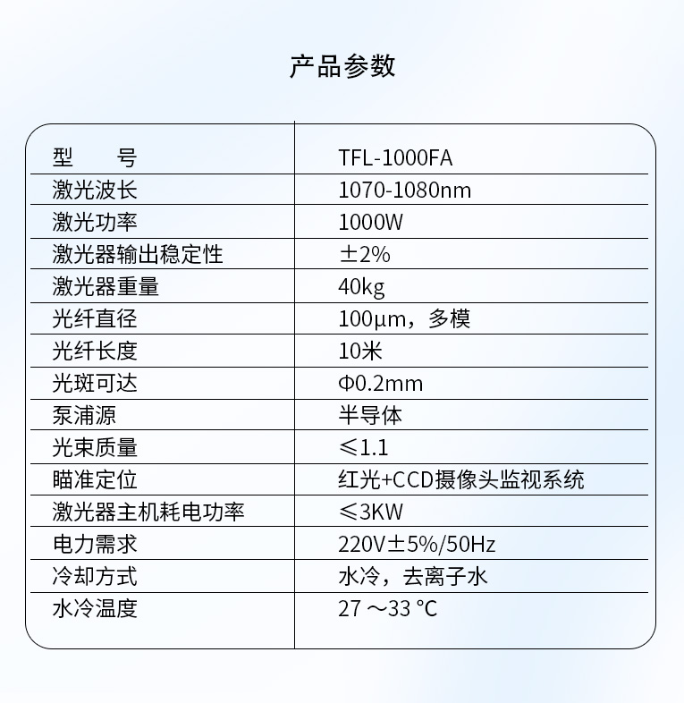 | 激光器型號(hào) | TFL-1000FA |