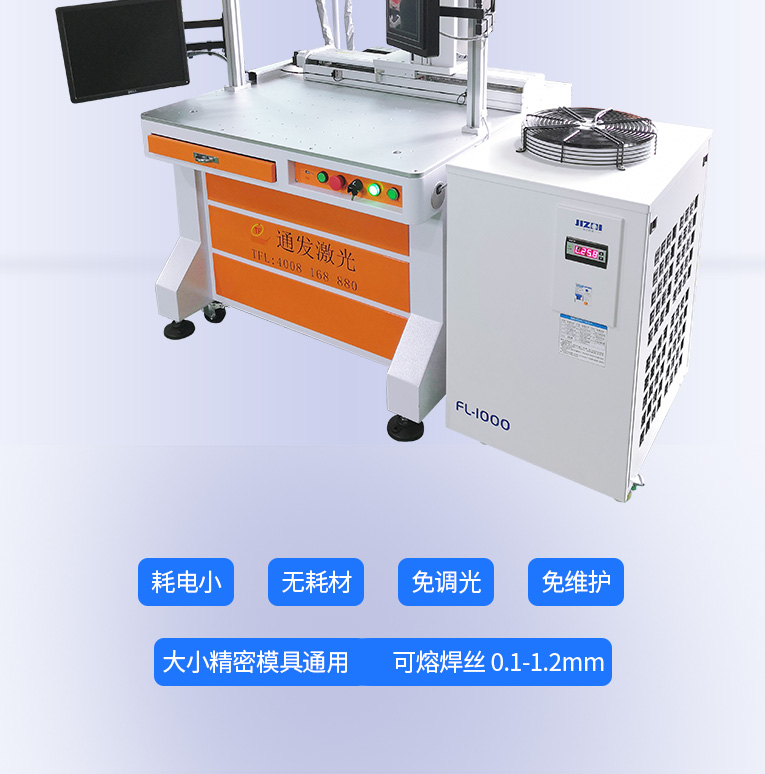 1、采用光纖激光器,反射率高,能量強(qiáng),免維護(hù),免調(diào)光,功耗少,相比傳統(tǒng) 模具焊來說,體積小,安全,穩(wěn)定性好超長(zhǎng)使用壽命。