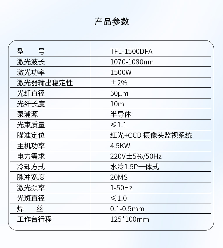 | 激光功率 | 1500W |
